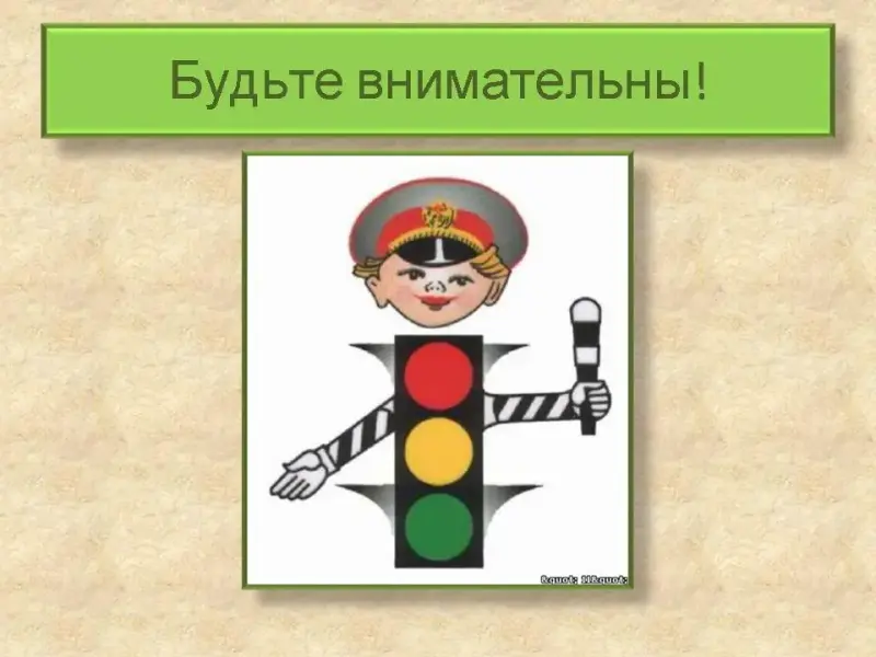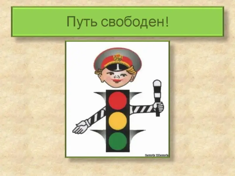 А сейчас мы отправляемся дальше. Регулировщик Витя даёт сигнал - проходите. (Слайд 9)