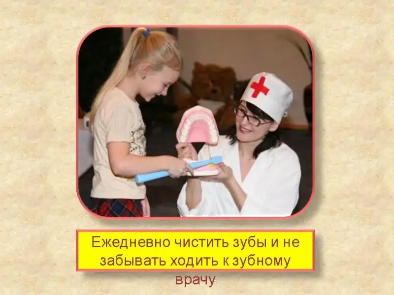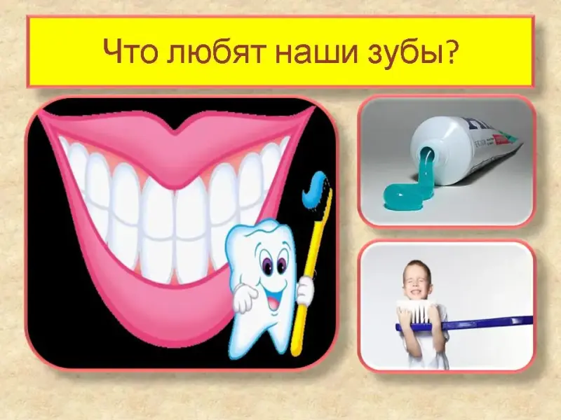 - Что надо делать, чтобы зубы были здоровыми? (Чистить зубы два раза в день - слайд 15, два раза в год ходить к зубному врачу - слайд 16, есть поменьше сладкого.)
