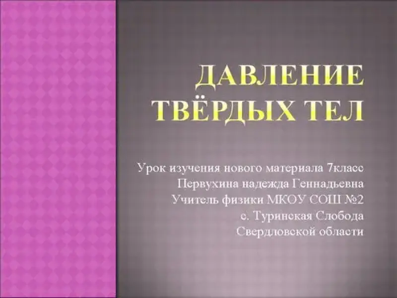 Компьютерные технологии на уроках физики "Давление. Единицы давления". 7-й класс