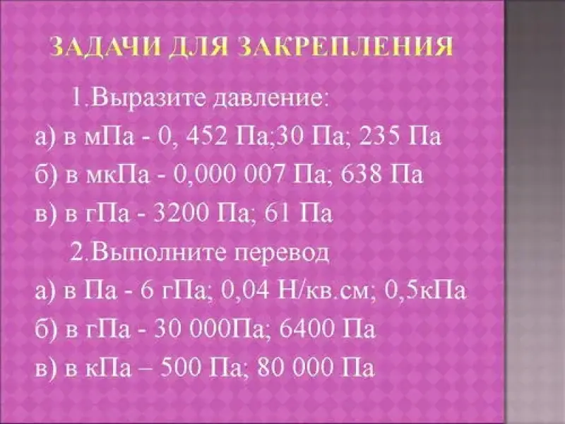 1. Выразите давление: