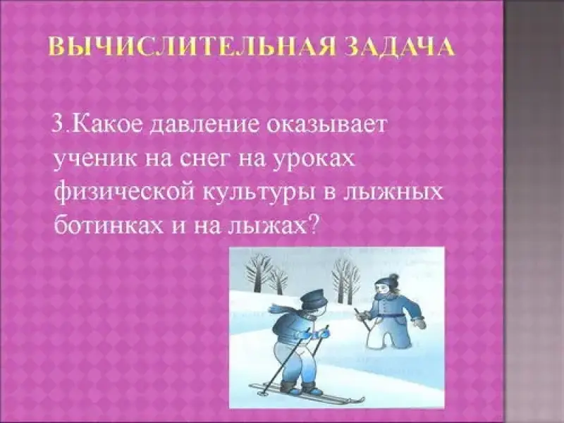 Вычислить какое давление оказывает ученик на снег на уроках физической культуры.