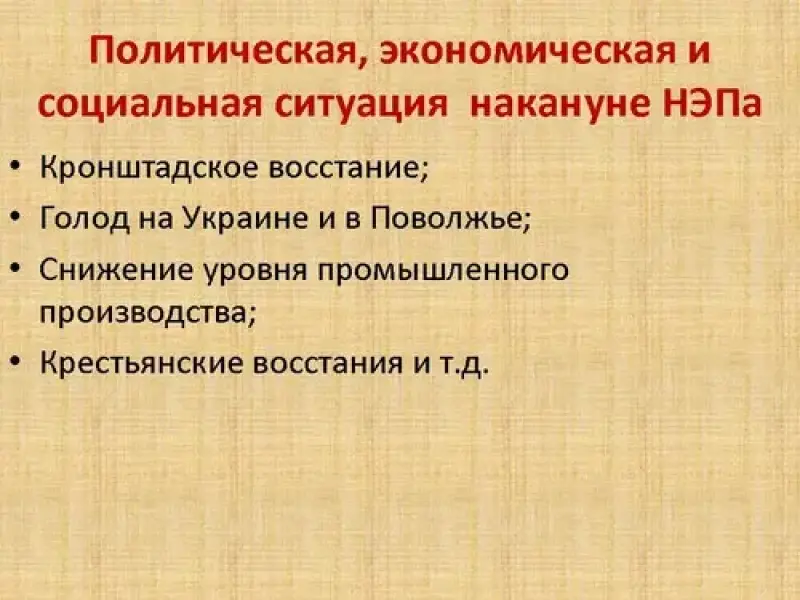 - Политическая, экономическая и социальная ситуации в СССР накануне введения НЭПа.