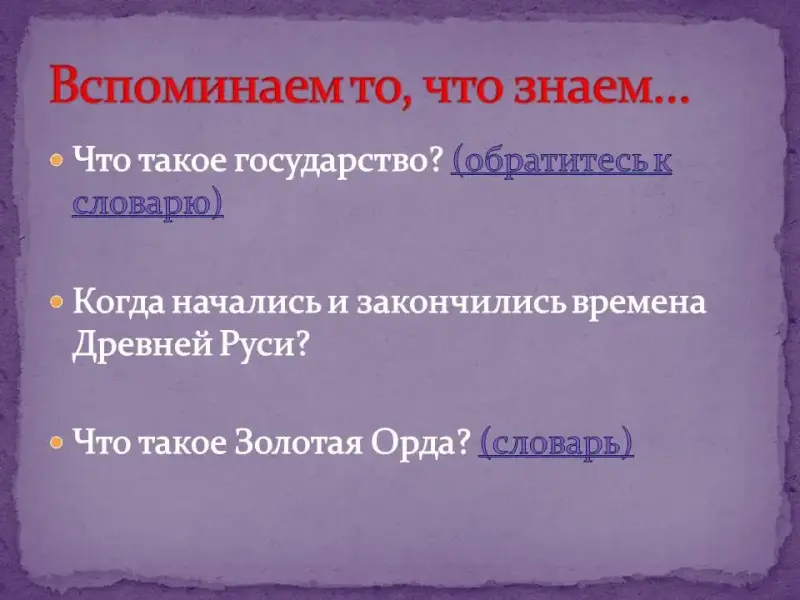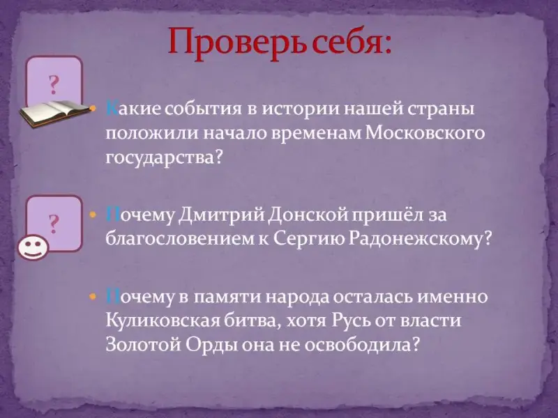 - А теперь давайте проверим, как вы запомнили рассмотренное нами сегодня событие.