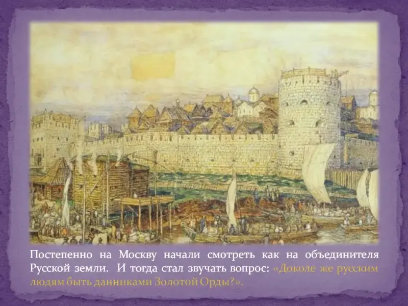 Постепенно на Москву начали смотреть как на объединителя Русской земли. И тогда стал звучать вопрос: «Доколе же русским людям быть данниками Золотой Орды?».