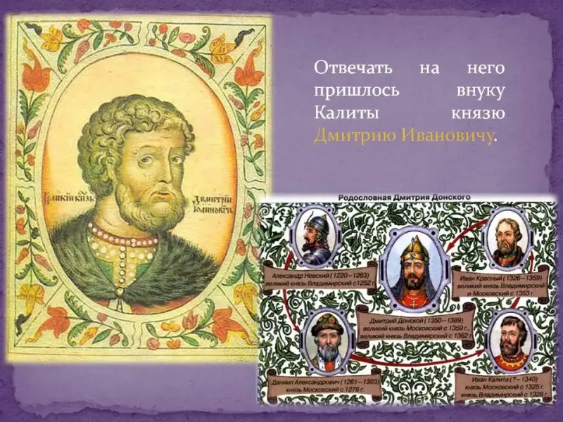 Обладая мощным войском, московские князья уже могли бросить вызов Золотой орде. Это произошло при князе Дмитрии Донском, внуке Ивана Калиты. Он отказался платить дань. Разгневанный правитель Орды