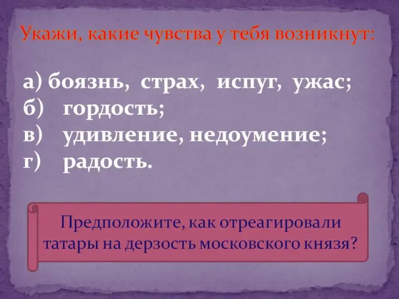 - Предположите, как отреагировали татары на эту дерзость московского князя? (Мнения детей)