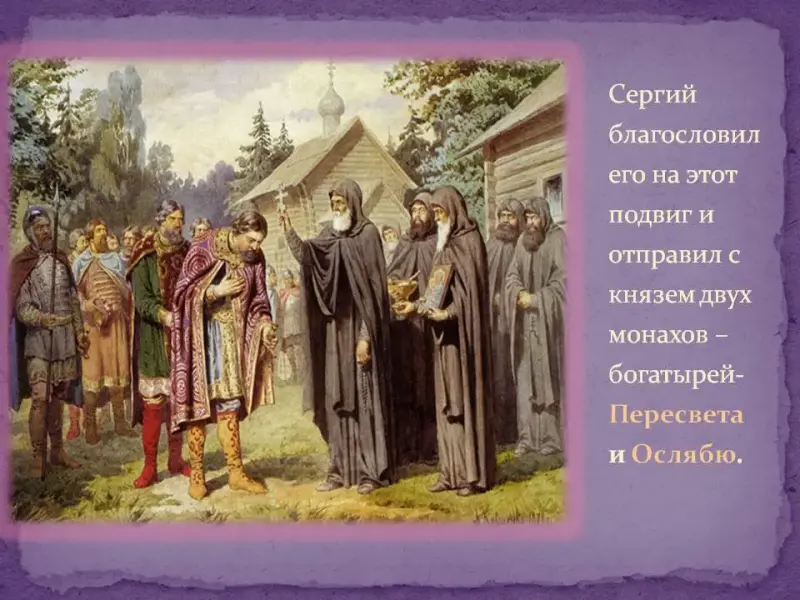 на трудное, но святое дело. Сергий отправил с князем двух монахов-богатырей Пересвета и Ослябю
