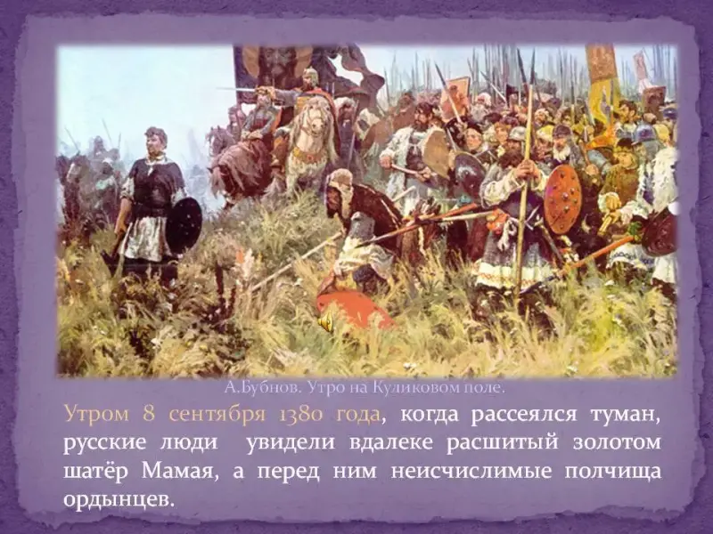 В этот год произошло очень важное для Руси событие. Куликовская битва.
