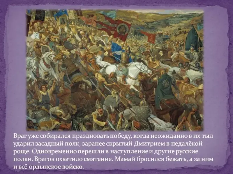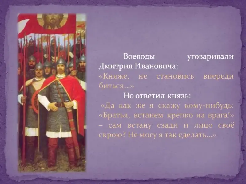 Мамай объявил, что приведет Русь к покорности. Но Дмитрий не испугался угроз Мамая. Он призвал под свои знамена русские дружины и князей из многих городов