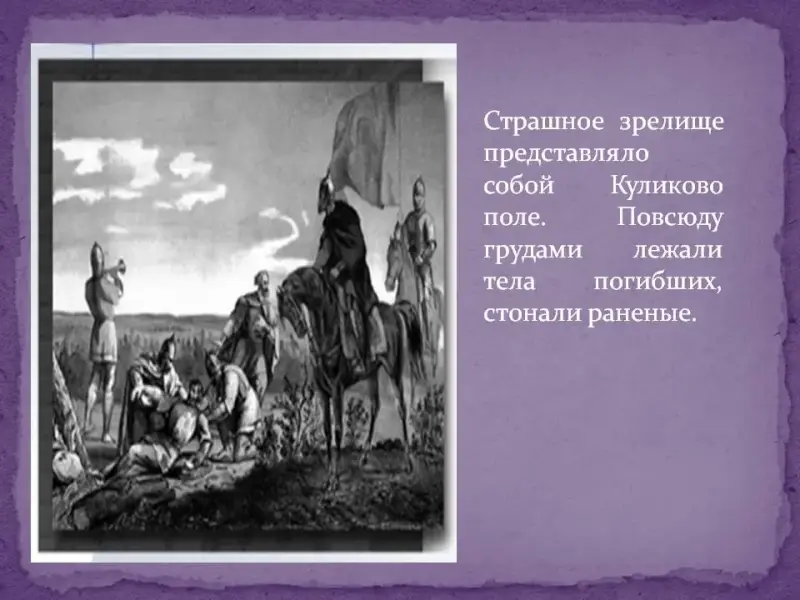 - Какова роль Сергия Радонежского в разгроме врага? (Придал характер битвы за веру, вселил веру в победу)