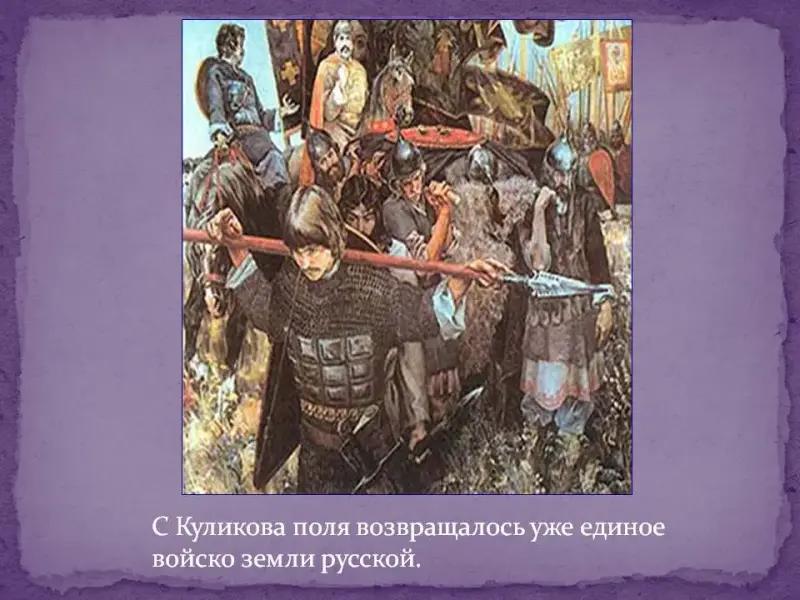 Хотя победа на Куликовом поле не привела к полному избавлению от ордынского владычества, она имела большое значение. Впервые русским войскам удалось одержать победу над главными силами Орды. Эта