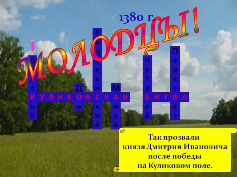 Победа над ордынцами была полная. Сражение показало, что можно победить Орду, но для этого нужно единство и сплочение. За эту славную победу князь Дмитрий Иванович был прозван Донским.