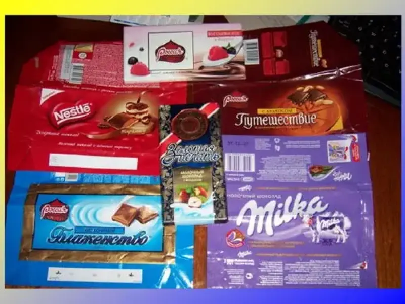 Слайд 13. (обёртки разных шоколадок)