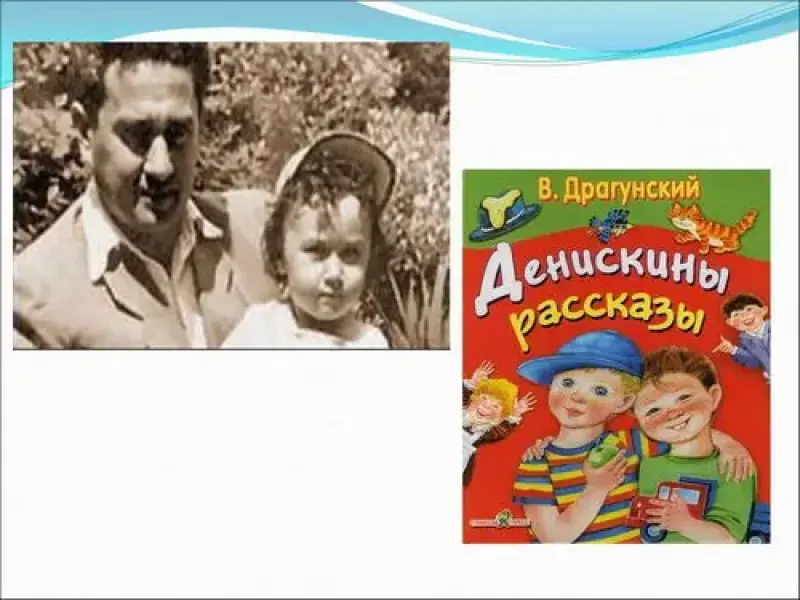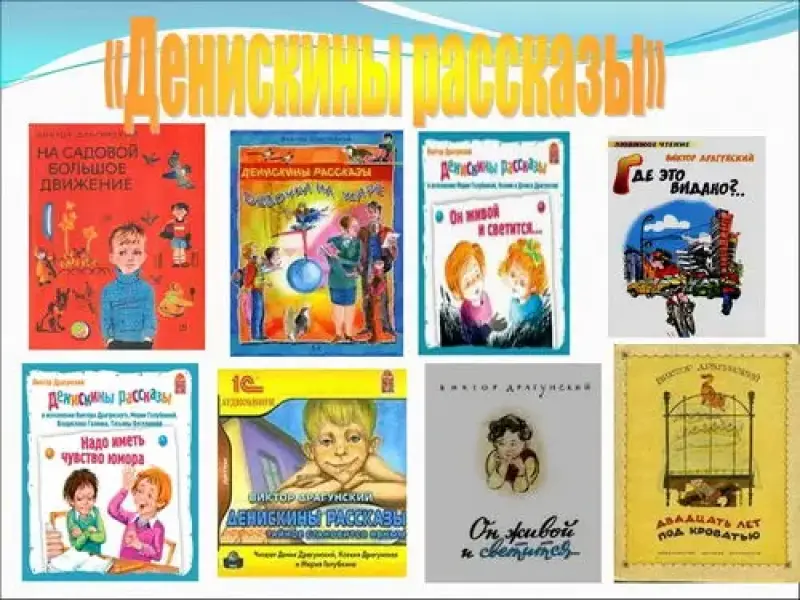 Вообще-то писателем Драгунский не собирался становиться. Но у него родился сын Дениска (слайд 14). И с Дениской стали случаться всякие смешные истории. Виктор Драгунский стал эти истории записывать, получились Денискины рассказы, над которыми смеются не только в России, но и во многих странах мира. В этой книге 45 удивительных и забавных историй, случившихся с мальчиком Дениской, живущим в Москве (слайд 14 - 15)