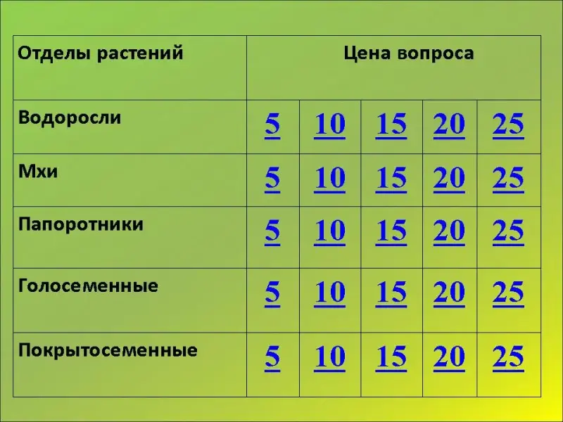 Урок-игра по биологии "Отделы растений". 6-й класс