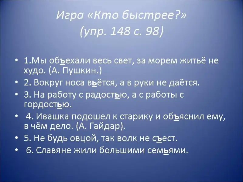 2. Игра "Кто быстрее?" Выполняется упражнение 148, с. 98 (устно) (Слайд 13)
