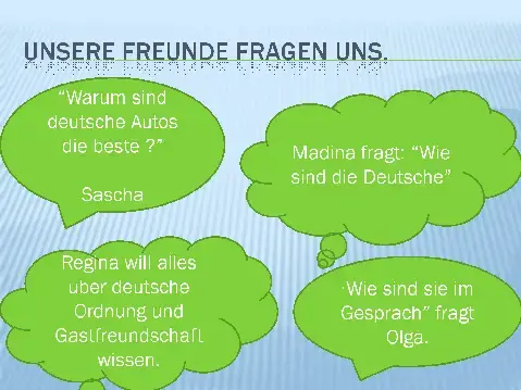 Wie meint ihr, mussen sie etwas uber Deutschland wissen? Konnen wir ihnen einige Information uber Deutschen erzahlen? Welche?