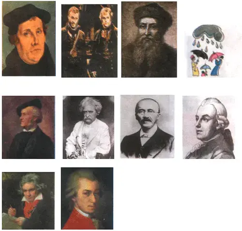 1.Аудирование. Deutschland ist reich an weltberuhmten Menschen Аuf welche Wissenschaftler ist die deutsche Nation stolz? Hort bitte einige Texte und bringt alle Namen in die richtige Reihenfolge.