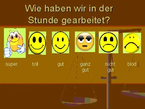 Sagt: welche Noten bekommen sie? (По оценочным листам.) Wie habt ihr gearbeitet?