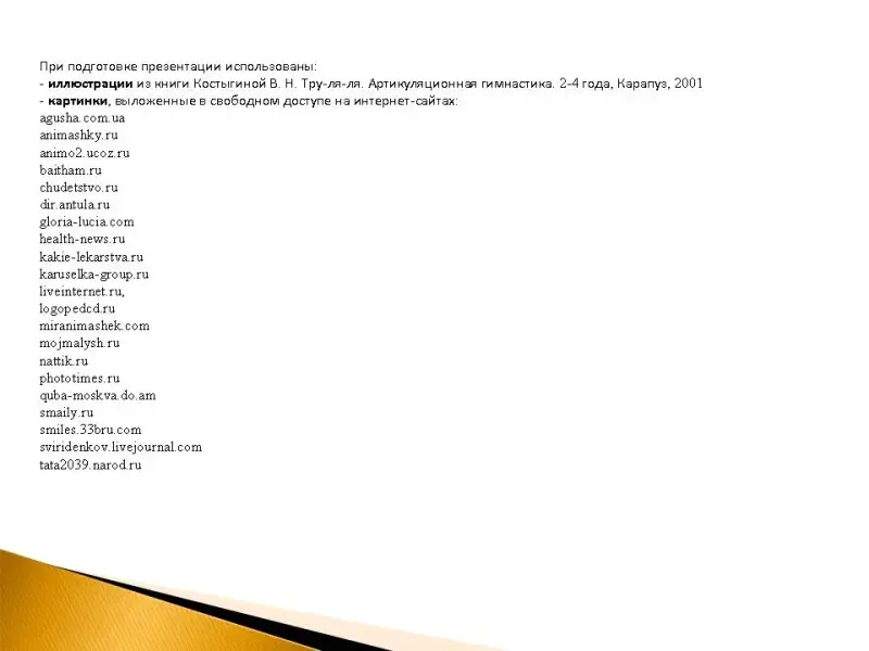 Слайд 3. Звуковичок предлагает детям рассказать, что они могут делать губами (улыбаться, поцеловать маму, вытянув губки пить сок через трубочку, сдуть пушинки одуванчика).