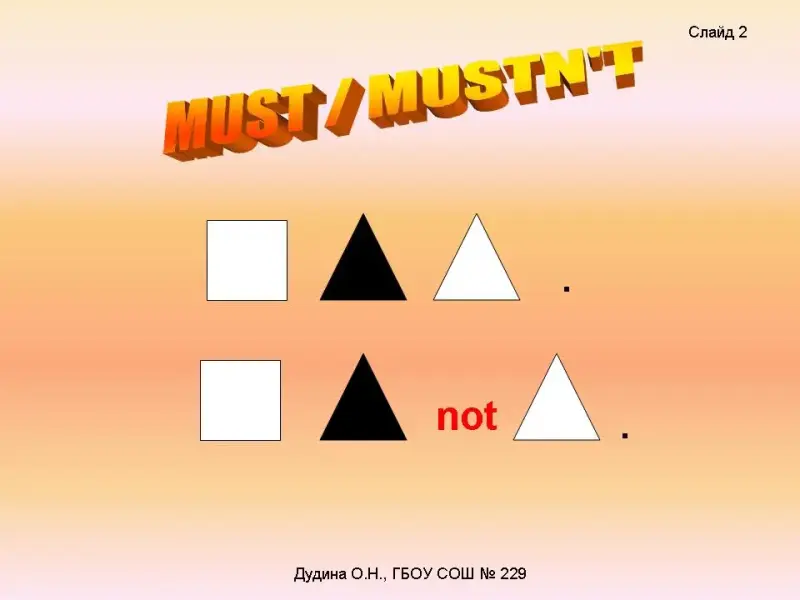 Цель урока: введение, отработка и закрепление модального глагола «must» (утвердит., отрицат.) в устной и письменной речи.