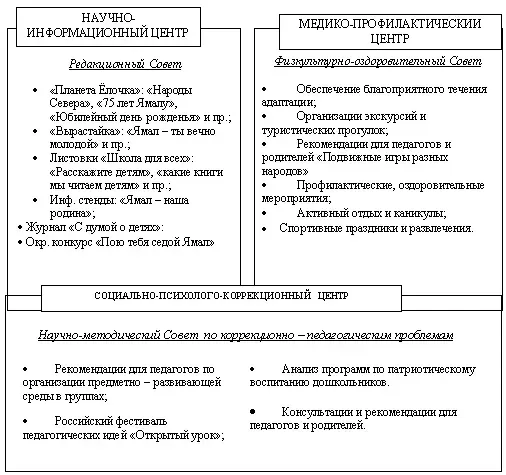 Каждый совет не дублирует функции других управленческих структур учреждения. Постоянная связь обеспечивает непрерывный процесс совершенствования, оказание реальной, действенной, своевременной помощи. Педагоги берут на себя ответственность и на своём уровне решают выдвинутые задачи.