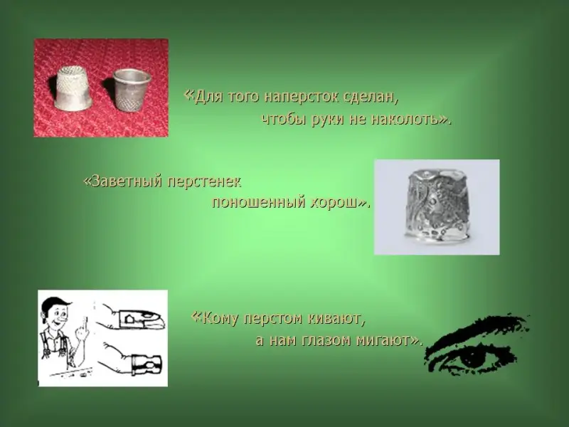 10 слайд. "Для того наперсток сделан, чтобы руки не наколоть".