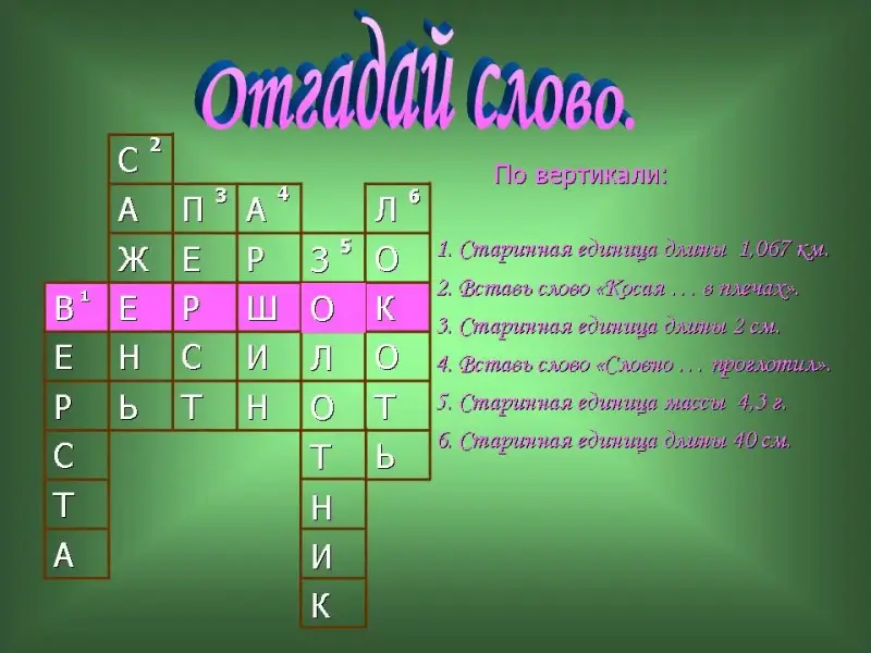 58 слайд. Кроссворд: "Отгадай слово". Приложение 2.