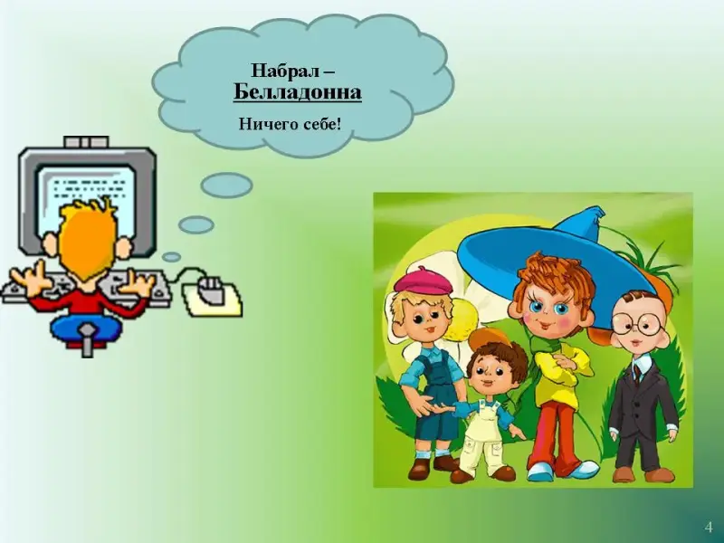 Слайд 4. Сели за компьютер и набрали "Белладонна… Ничего себе!".