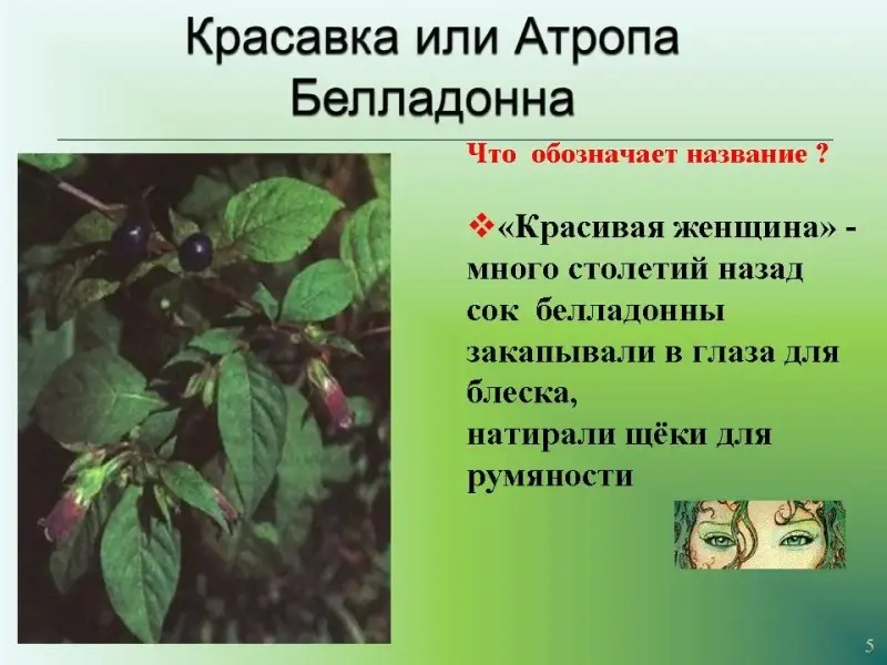 Слайд 5. Красавка или Атропа Белладонна.