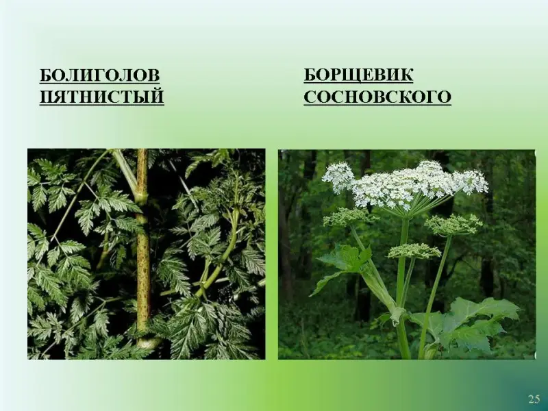 Слайд 25. Болиголов пятнистый. Борщевик Сосновского.