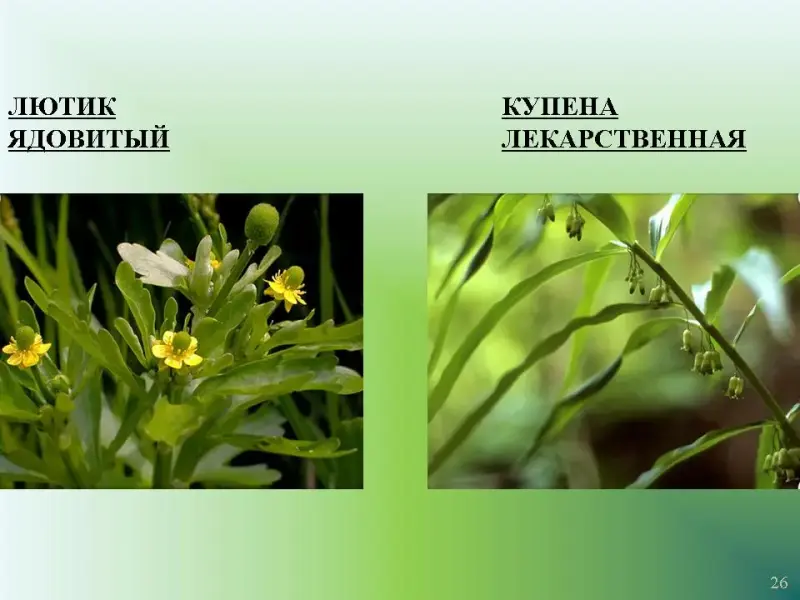 Слайд 26. Лютик ядовитый. Купена лекарственная.
