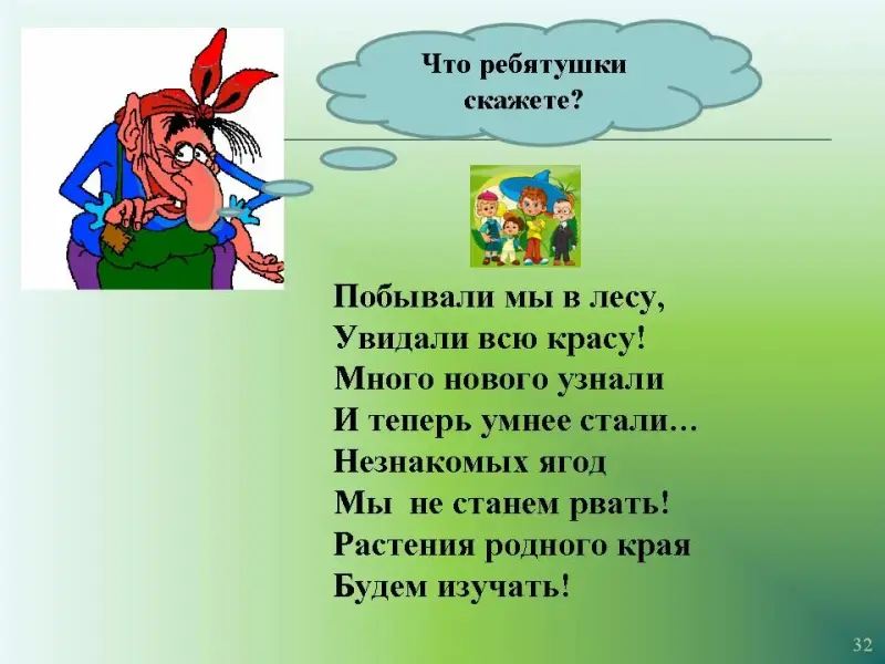 Слайд 32. Баба Яга спрашивает Незнайку и его друзей: