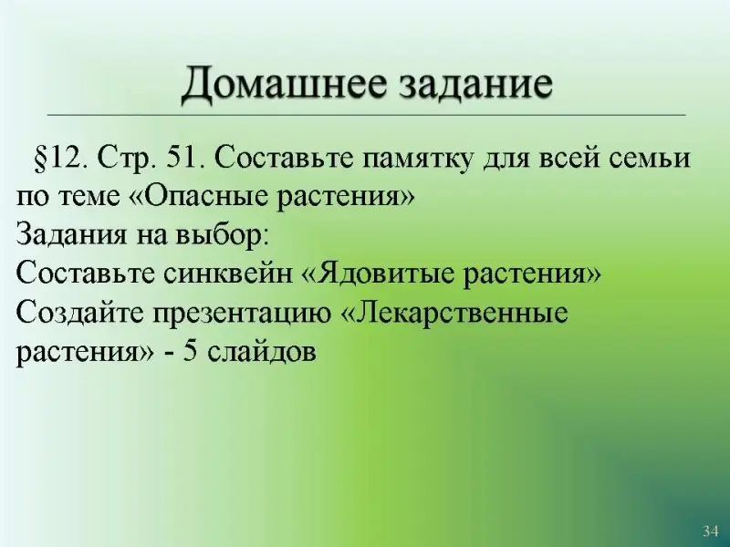 §12. Стр. 51. Составьте памятку для всей семьипо теме "Опасные растения".
