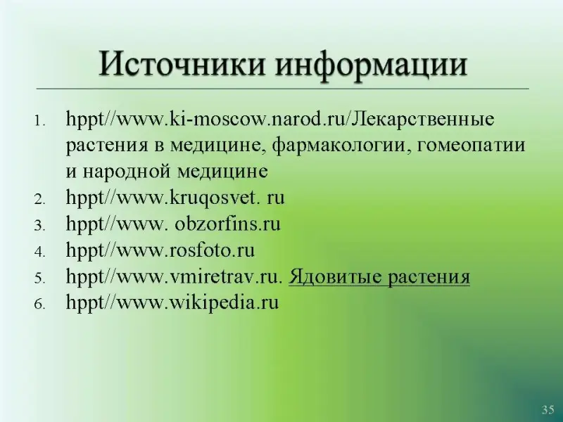 - hppt//www.ki-moscow.narod.ru/Лек�… растения в медицине, фармакологии, гомеопатии и народной медицине