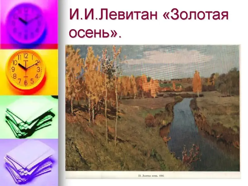 - Перед вами картина русского художника Исаака Иосифовича Левитана "Золотая осень". Рассмотрите её. (Слайд 4)