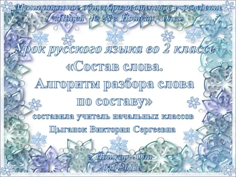 Урок русского языка. "Состав слова. Алгоритм разбора слова по составу". 2-й класс