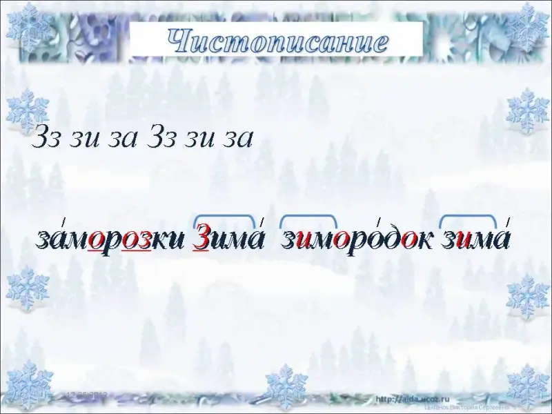 - Подберите к существительному зима подходящие прилагательные. Зима, какая? (Холодная, морозная, сказочная, суровая, снежная, вьюжная, студеная, белая и т.д.)