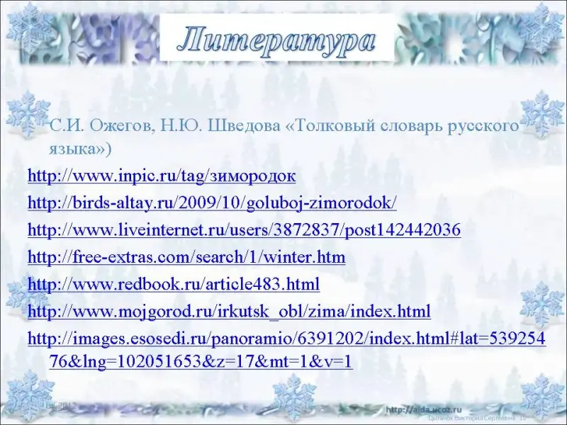 - С.И. Ожегов, Н.Ю. Шведова «Толковый словарь русского языка»)