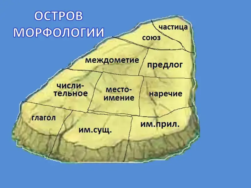 - Великое количество слов в нашем языке - сотни тысяч. Как же разобраться и управиться с такой армией слов? К счастью, есть у слов строгий командир - Морфология. И сегодня мы побываем в гостях у Морфологии, на её острове. (Слайд 1)