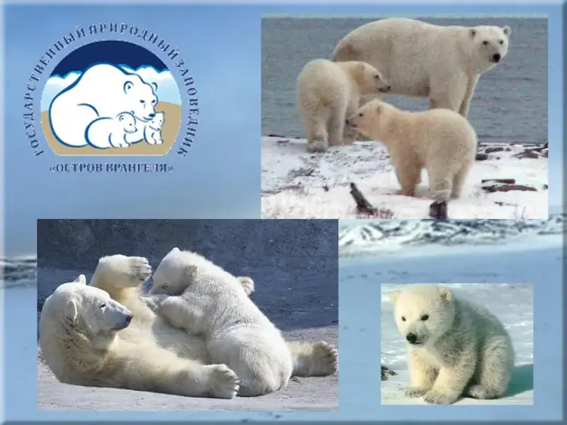 Почему же этот остров так искали? Его называют главным "родильным домом белых медведей" России. Почти со всей Арктики сюда приходят белые медведи, чтобы дать потомство, вырастить и воспитать своих медвежат. (Слайд 19)