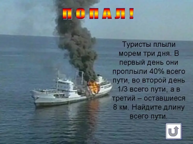 оставшейся части пути. Сколько миль проплыли друзья в третий день? - Решите задачу. Туристы плыли морем три дня. В первый день они проплыли 40% всего пути, во второй день