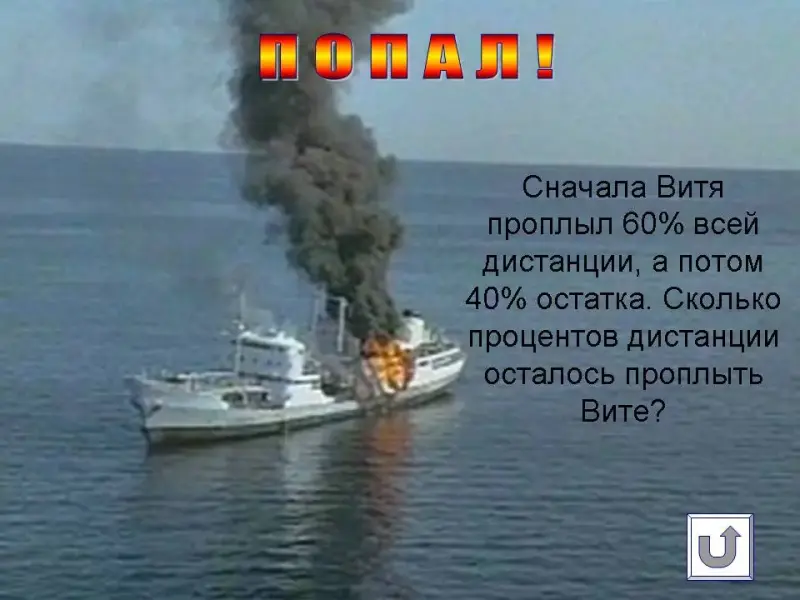 раза меньше, чем в третий час. Сколько километров проплыл Коля за эти три часа? - Решите задачу. Сначала Витя проплыл 60% всей дистанции, а потом 40% остатка. Сколько процентов дистанции осталось проплыть Вите?