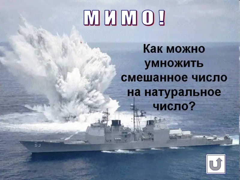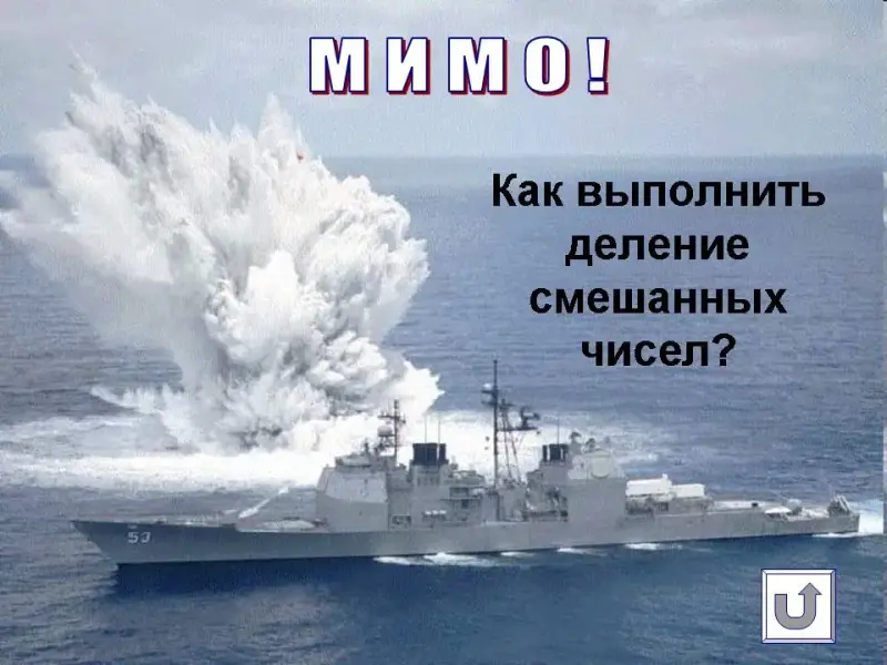 Оборудование: компьютер, проектор, презентация «Морской бой», таблица «Действия со смешанными числами».
