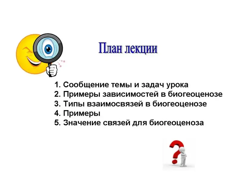 Урок-лекция "Типы связей и зависимостей в биогеоценозе". 10-й класс