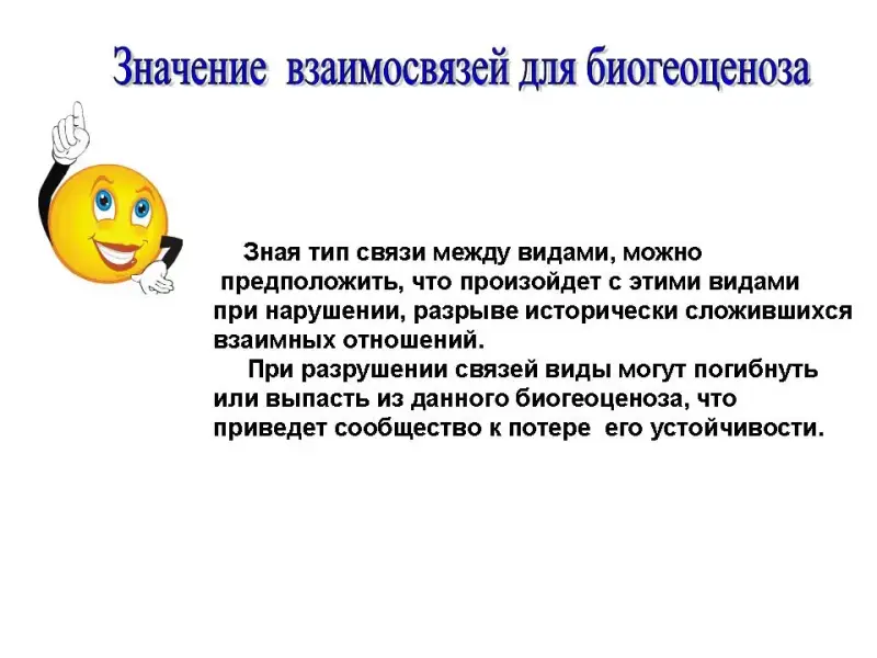 - Типы взаимосвязей в биогеоценозе (рассказ учителя, демонстрация презентации).