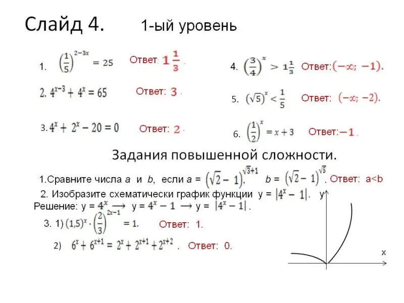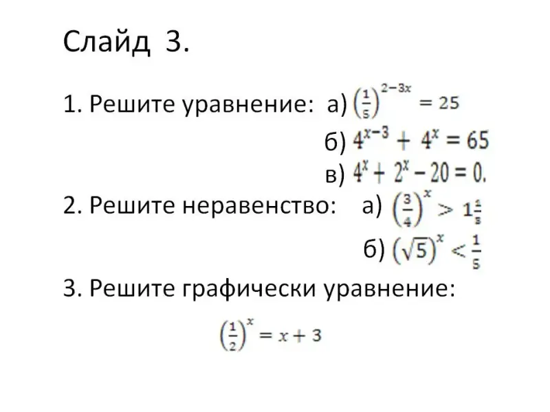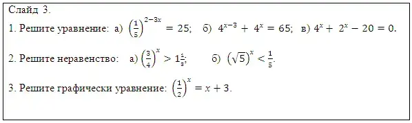 2. По таблице 2 (Приложение 1), повторяем решение показательных уравнений и неравенств.