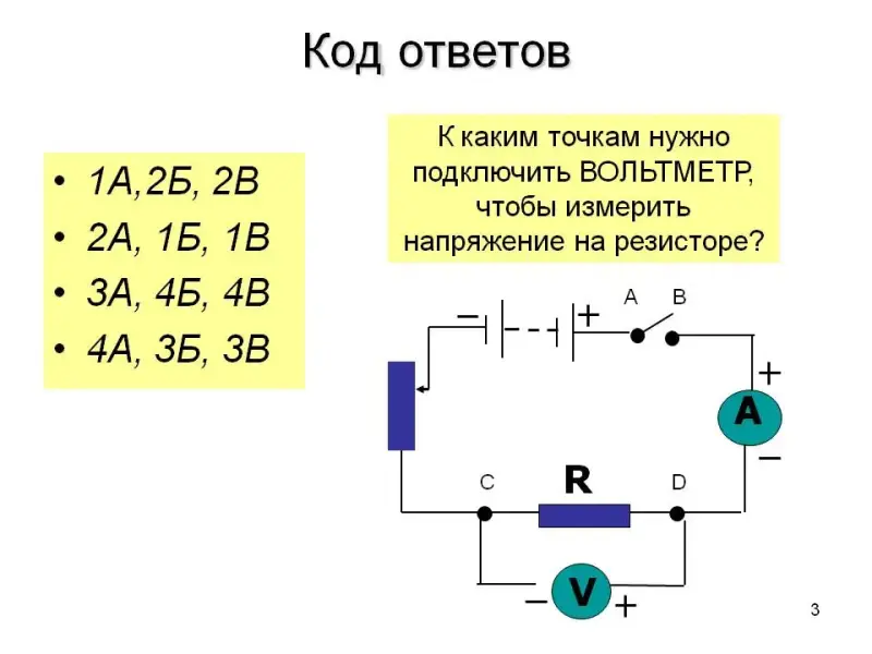 - К каким точкам нужно подключить ВОЛЬТМЕТР, чтобы измерить напряжение на резисторе (Слайд 3, по щелчку) Ответ - CD (Слайд 3, по щелчку)