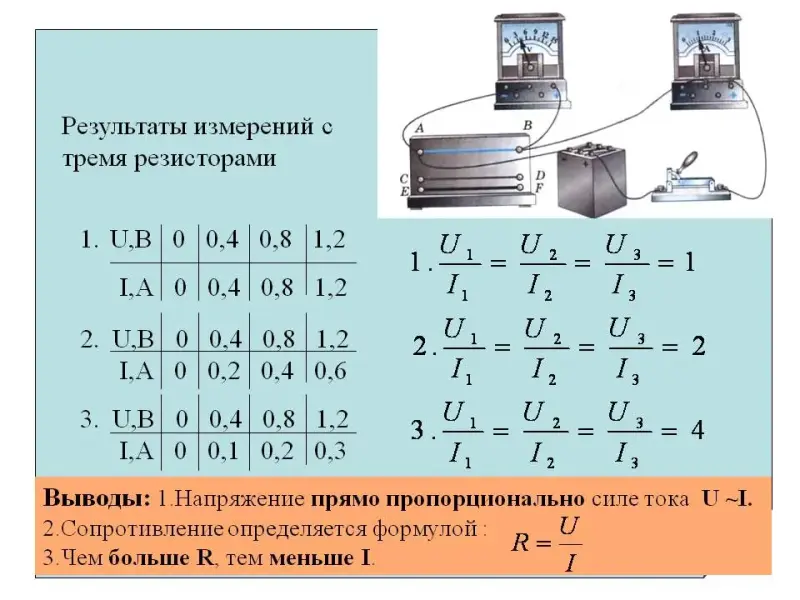 3) Чем больше сопротивление проводника, тем меньше сила тока.
