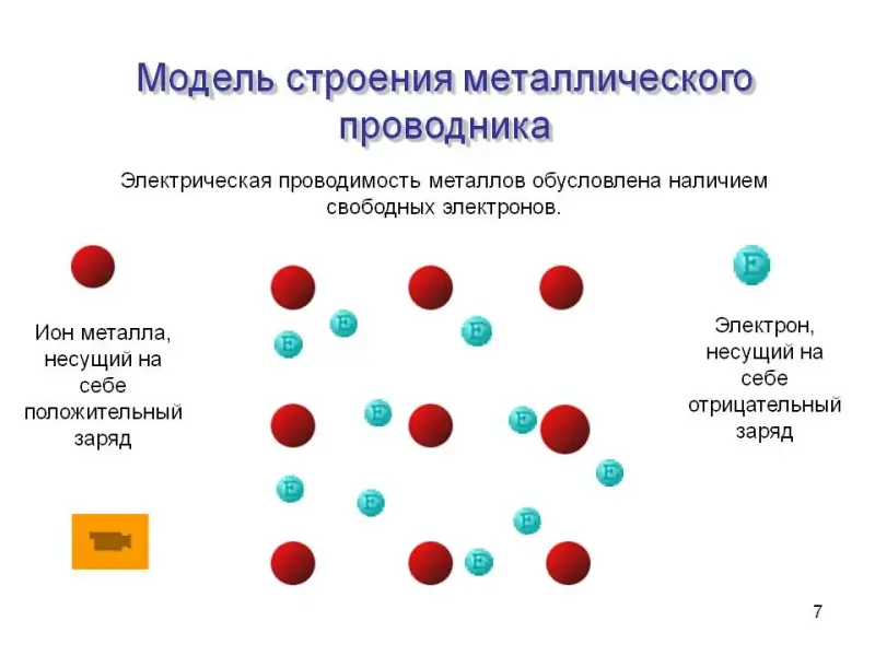 - Как взаимодействуют те же электроны с положительно заряженными ионами кристаллической решетки проводника? (Притягиваются)